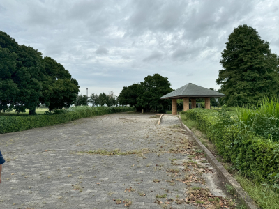 公園内には数カ所ベンチや屋根付きのあずまやがあるので、休憩したりキッチンカーの軽食を食べたりできます。